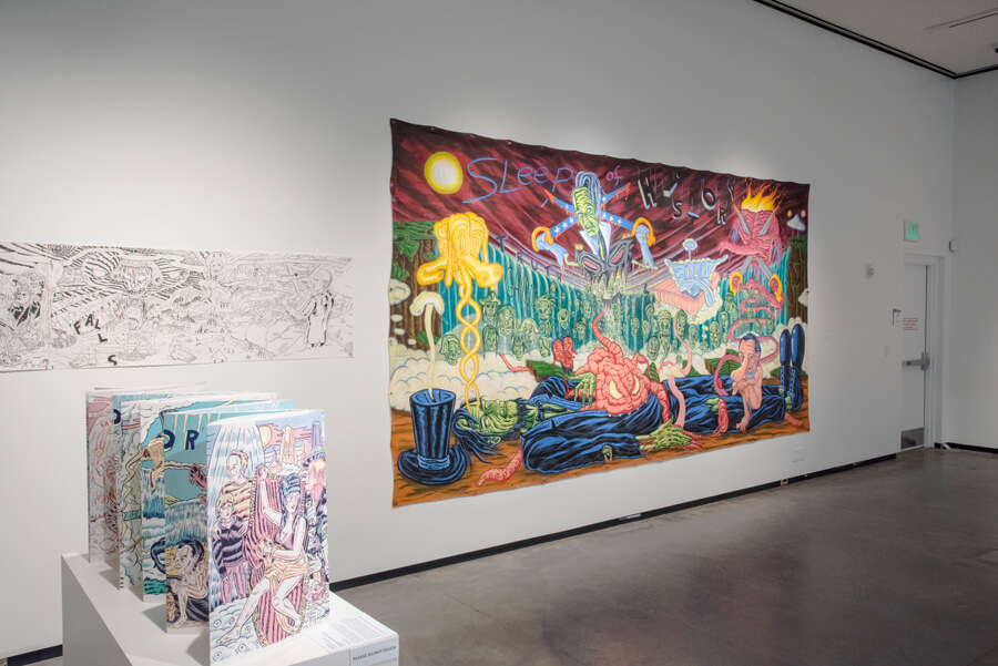 Selected works from artist and alumnus David Sandlin will be on display at the University of Alabama at Birmingham in an exhibition is presented by the College of Arts and Sciences’ Abroms-Engel Institute for the Visual Arts. Two major series of works by Sandlin will be featured, “A Sinner’s Progress: A Modern Moral Journey” and “76 Manifestations of American Destiny,” and will include a selection of hand-printed books, drawings, and paintings.