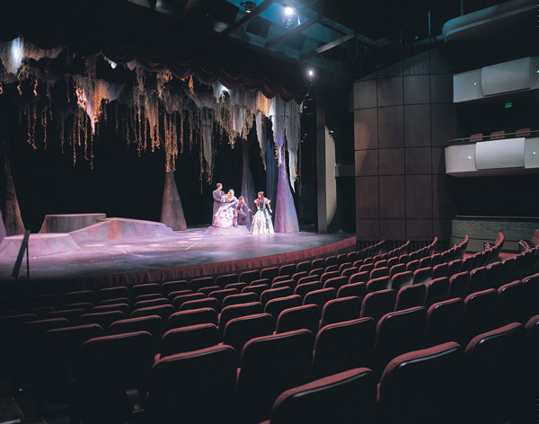 Our larger-scale shows are presented here, in the 350-seat Sirote Theatre. Its 38-foot-wide proscenium, state-of-the-art audio, and 384-circuit lighting system make it one of the finest theatres of its kind in the region.