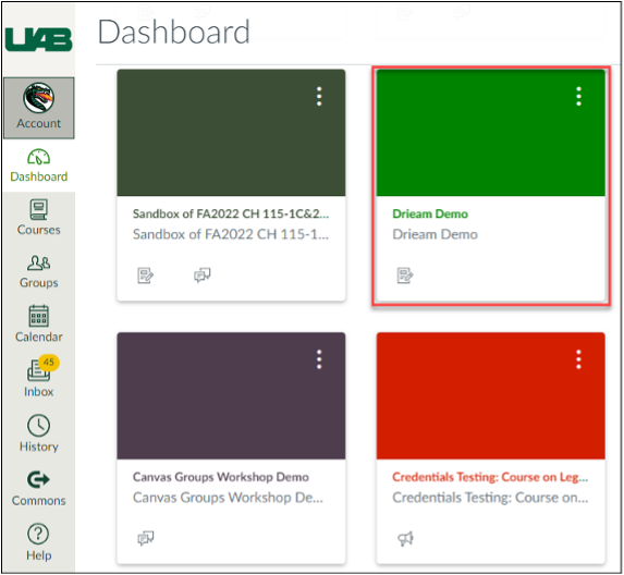 Students can access Qualtrics assignments within a Canvas course. To do so, go to your course list on the Canvas dashboard and select the course you would like to access Qualtrics assignments in.