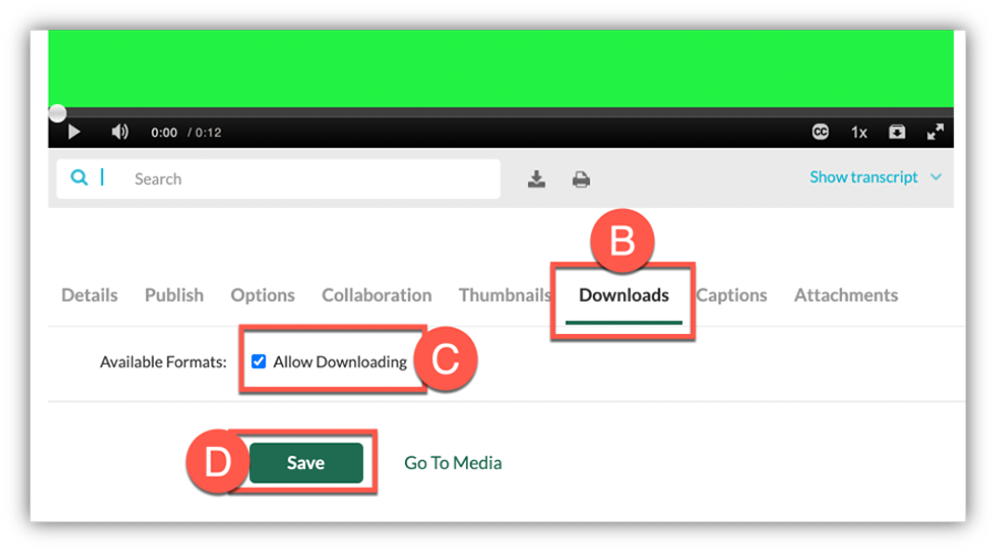 - Check the box to Allow Downloading (C) then click Save (D).