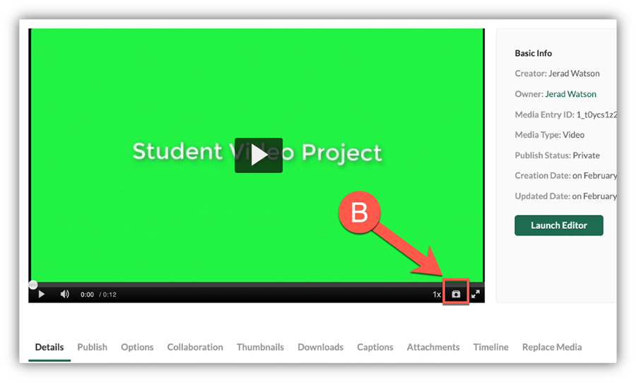 Note: If you do not see this icon, you are not on the edit screen or you are not the owner of the video.
