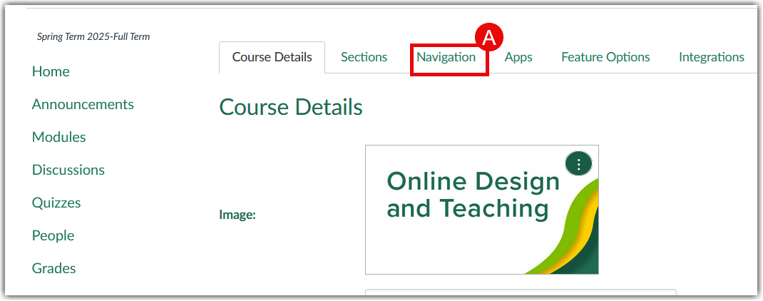 - Simple Syllabus (A) will now be visible and enabled in your left-hand course navigation.