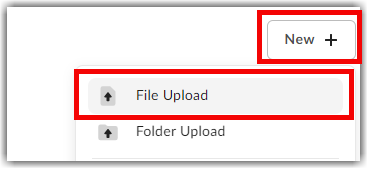 - Click New at the top right and choose File Upload.