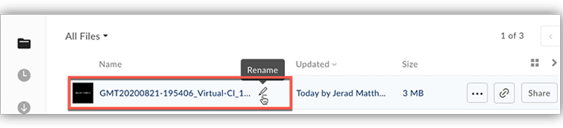 - The file will show at the top of your All Files list when completed. The name of the file can be changed by hovering over the title and clicking the Pencil.