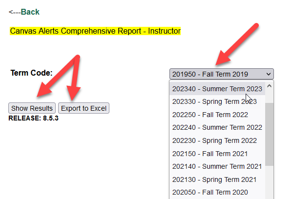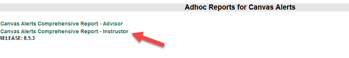 - Click on “Canvas Alerts Comprehensive Report – Instructor” to display the report.