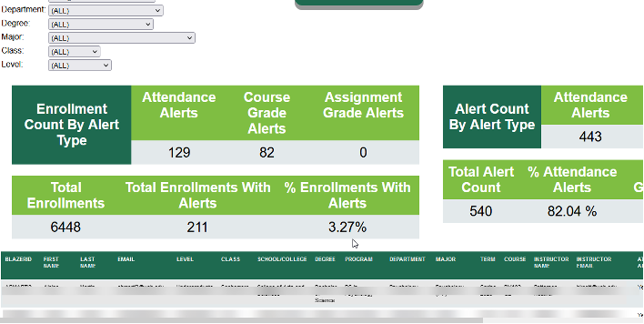 - Use filters to display data by department, degree, etc.