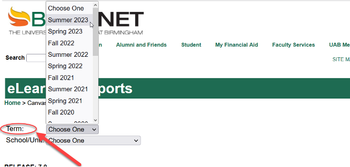 - Select a term for the report.