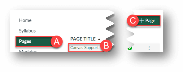 1. Go to desired course and click Pages (A).