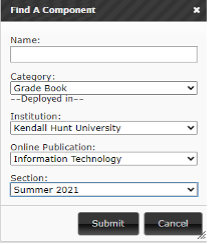 - Click Search to find your gradebook (NOTE: you may not need to do this step if you can see your Gradebook initially on the Components screen).