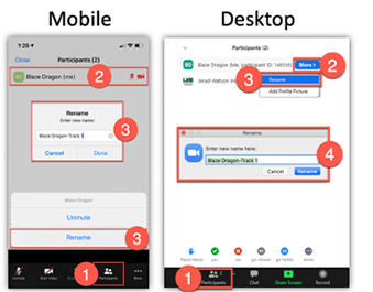 Tell participants to make sure their display name is their first and last name or BlazerID. They can change their display name either before or during the Zoom meeting. You can