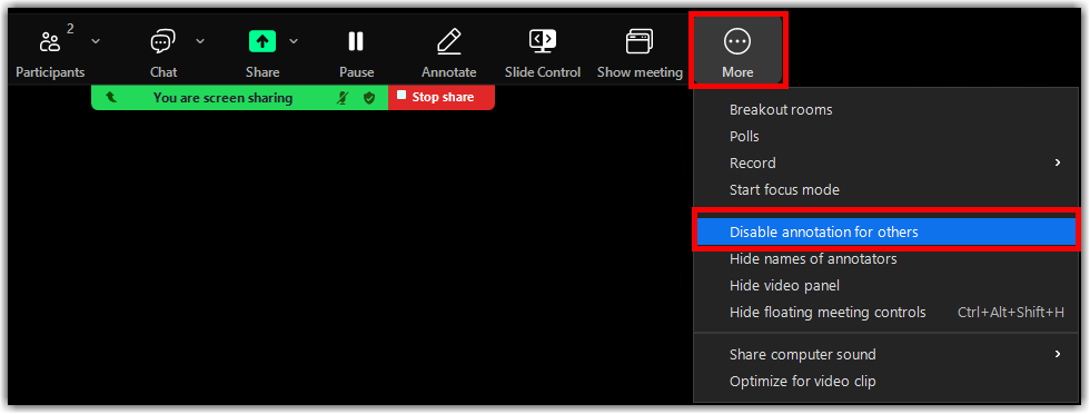 Disable Participant Annotation on Shared Content