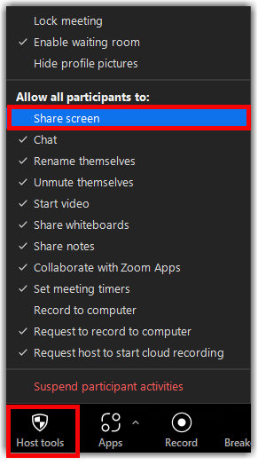 - Click the Host tools Icon on the Zoom toolbar.