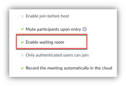 - Check Enable Waiting Room to enable and uncheck to disable.