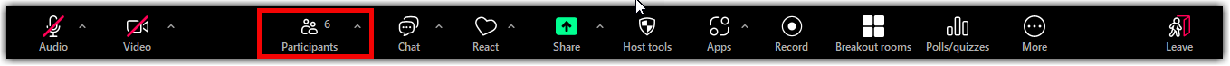- Click Participants in the host controls to display the participants list.