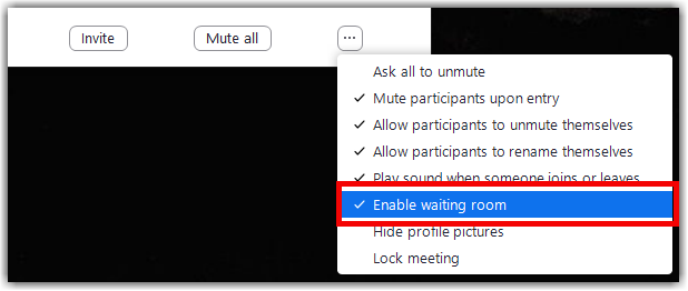 - Click More and choose Enable Waiting Room on Entry to enable or disable the feature.