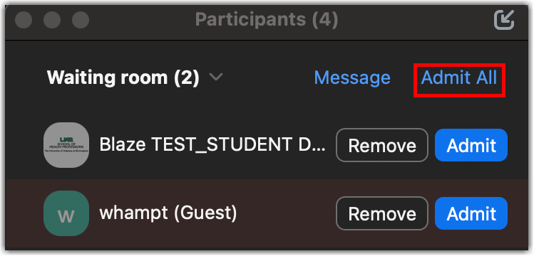 - Click Admit all.
