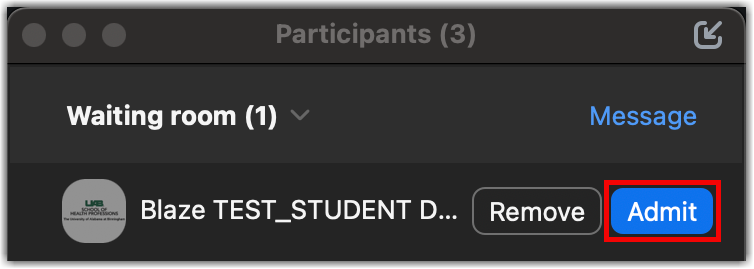 - Click Admit to have the participant join the meeting.