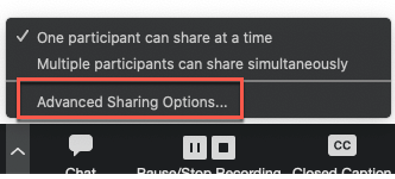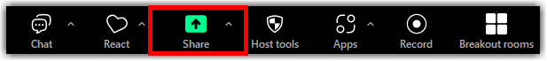 - In the host controls, click the arrow next to Share Screen.