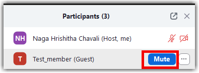 - Hover over a participant and click Mute.