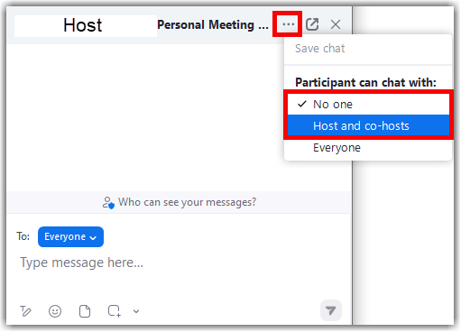 Host/co-hosts can toggle the ability for participants to be able to chat.