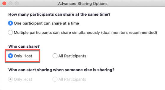 - Under "Who can share?" choose Only Host.