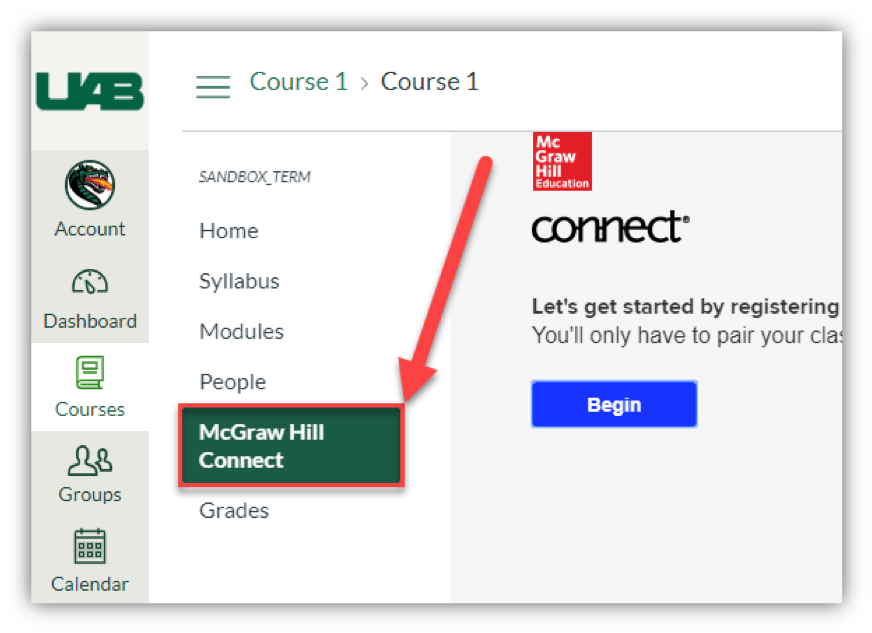 Instructors and students can access McGraw-Hill by clicking the link in the Canvas course navigation. Note: Faculty must enable this link first opens a new website.