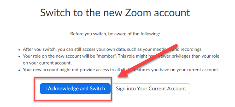 - Click the "I Acknowledge and Switch" button, when prompted.