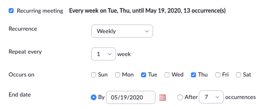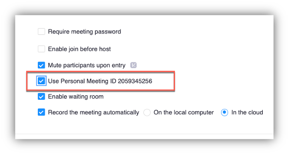If you want your office hours to be available to multiple classes at the same time, you can click the checkbox in the meeting options to ‘use personal meeting ID’. This will allow everyone from multiple classes to join into the same meeting. *This option is not available for reoccurring meetings.
