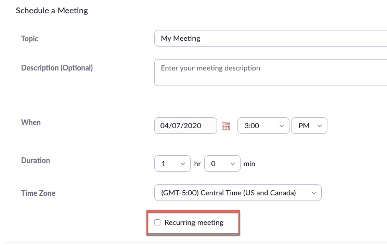Users can schedule a meeting and set it to reoccur at “no set time”. This allows this meeting to be used repeatedly at any time with the join link and other settings staying the same.