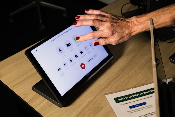 “My favorite feature is the seamless integration of my laptop’s Zoom application with all the classroom’s technology. The class meeting pops up on my Zoom homepage, and all I have to do is click Start,” Cato said. “My laptop screen wirelessly projects to both the front and back monitors of the classroom.”
