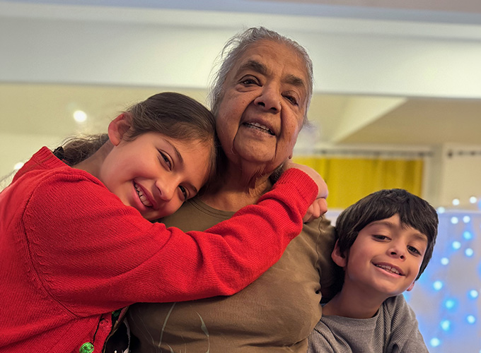 Dr. Patel shared a photo of her mother, also known as the best khaman maker, and her children during the holiday season.
