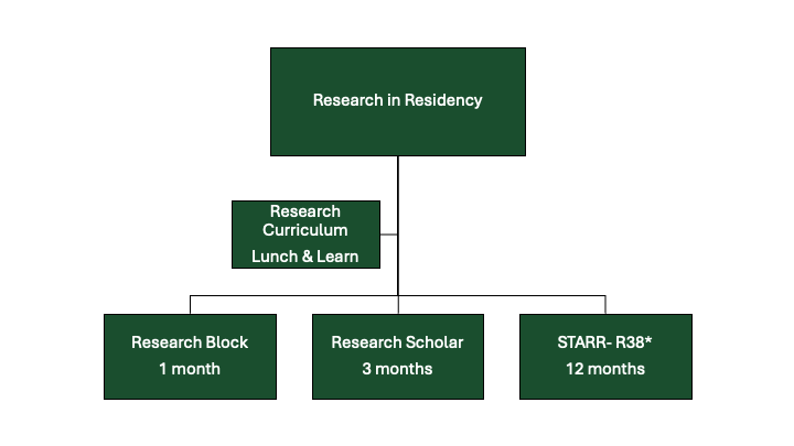 To support our residents’ academic interests and career goals, we offer dedicated research opportunities through our Scholarly Research Block, which provides up to two months of protected research time during the PGY-2 and PGY-3 years. For those with a deeper interest in academic medicine or physician-scientist careers, the Research Scholar Program offers a competitive three-month research block focused on the development of research skills and the pursuit of a meaningful scientific question. While residents continue to maintain limited clinical responsibilities during these blocks, the primary focus is on advancing scholarly work in a supportive and resource-rich environment.