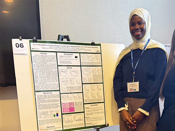 “Bile Acid Binding Resins Improve Glucagon Receptor Agonist-Mediated Weight Loss in Diet-Induced Obese Mice.” Poster presentation by Khadija Seck, Habegger Lab.