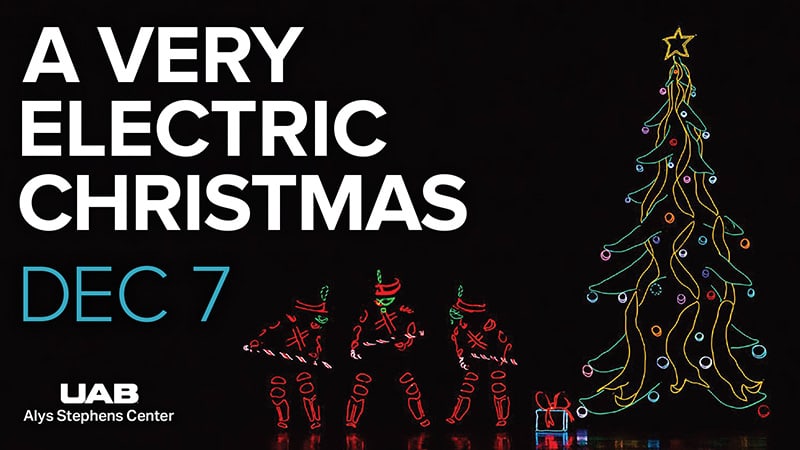 “A Very Electric Christmas” will be at 4 p.m. in UAB’s Alys Stephens Center. Tickets start at $25; $15 for children age 12 and younger. Buy tickets. Call the Alys Stephens Center at 205-975-2787 or visit AlysStephens.org.