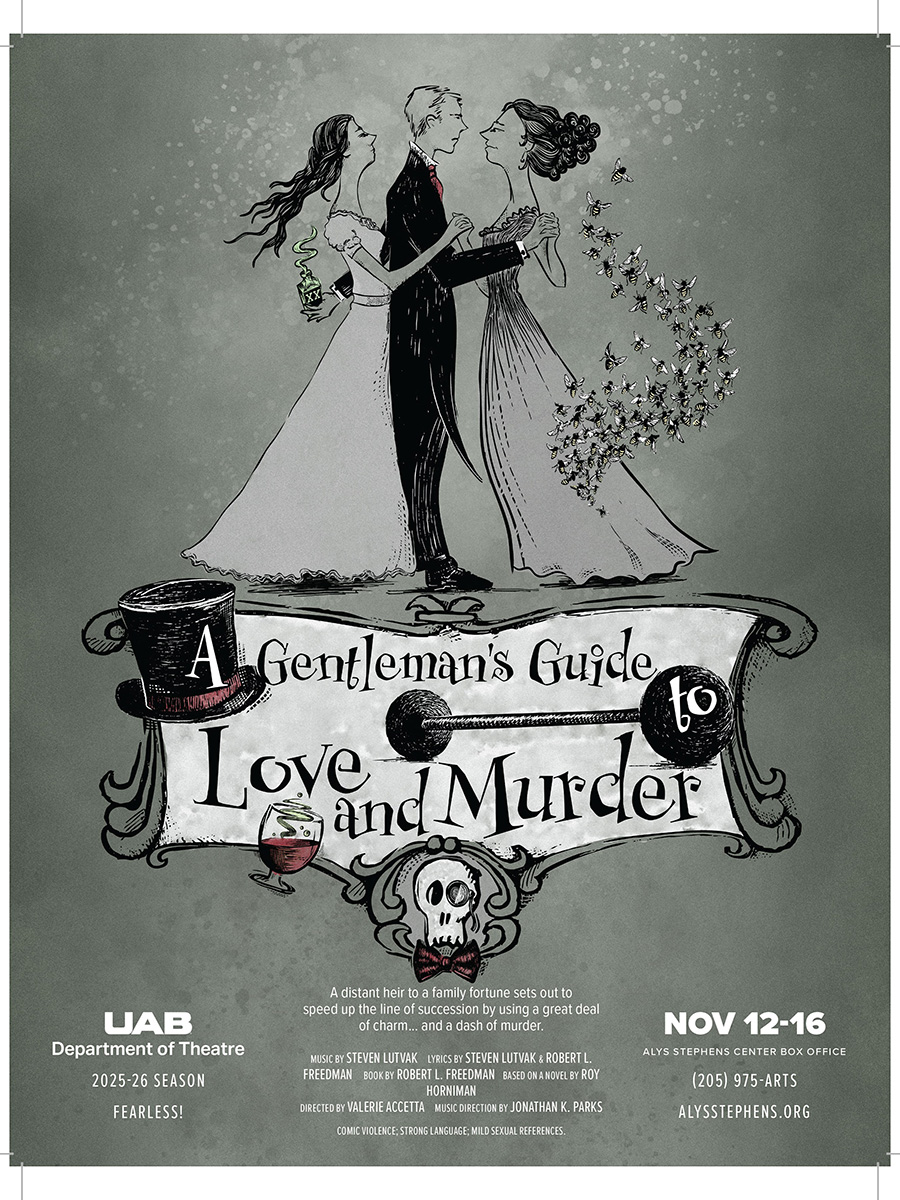 will present the 2014 Tony Award winner for Best Musical, “A Gentleman’s Guide to Love and Murder,” with five performances from Nov. 12-16 at the University of Alabama at Birmingham.