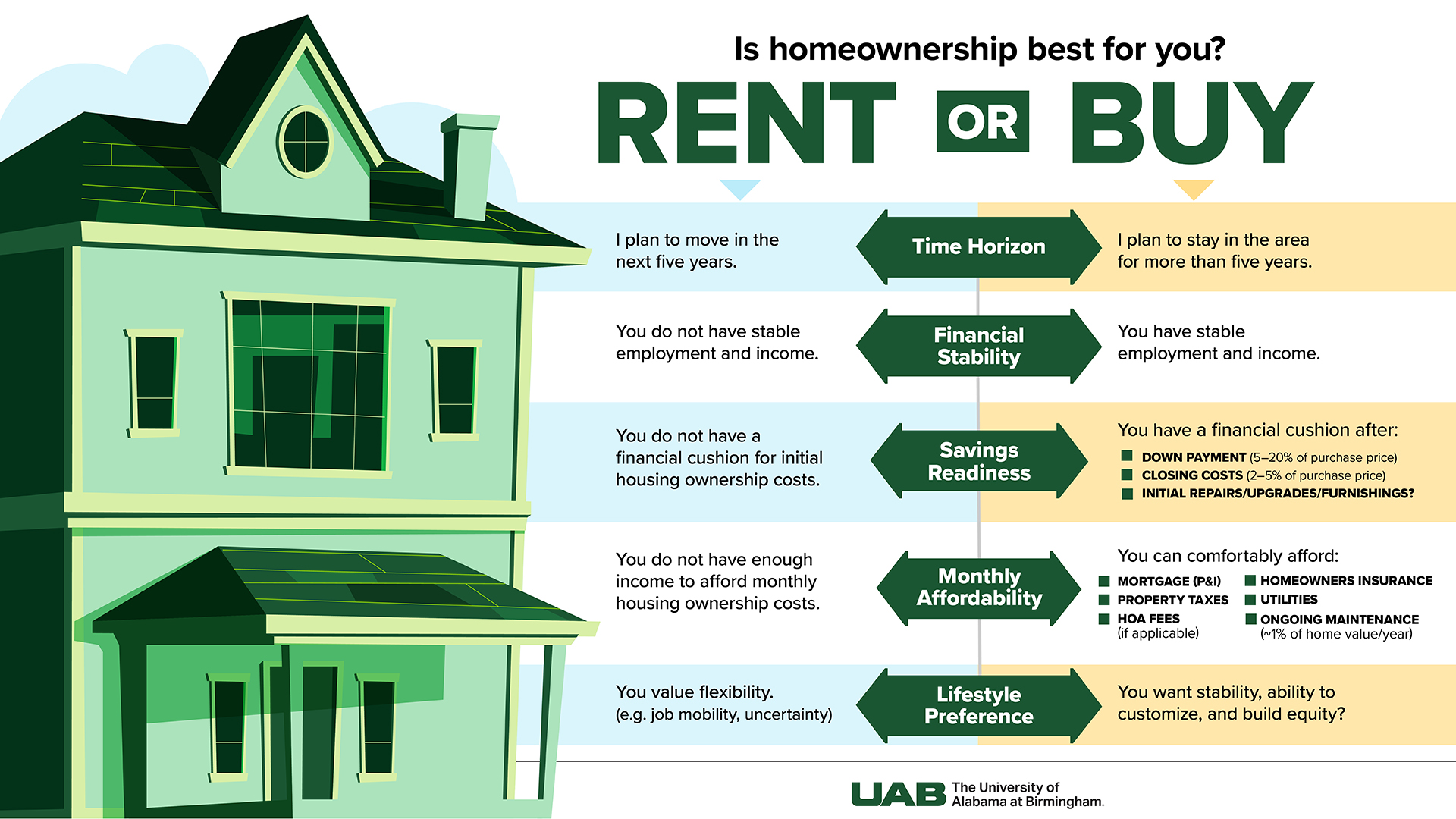 Whether one is renting or buying, UAB experts emphasize the importance of understanding the complete financial picture. They advise that housing decisions should consider more than just comparing monthly rent to a mortgage payment. Factors like maintenance costs, insurance, taxes and long-term financial goals all play a crucial role.