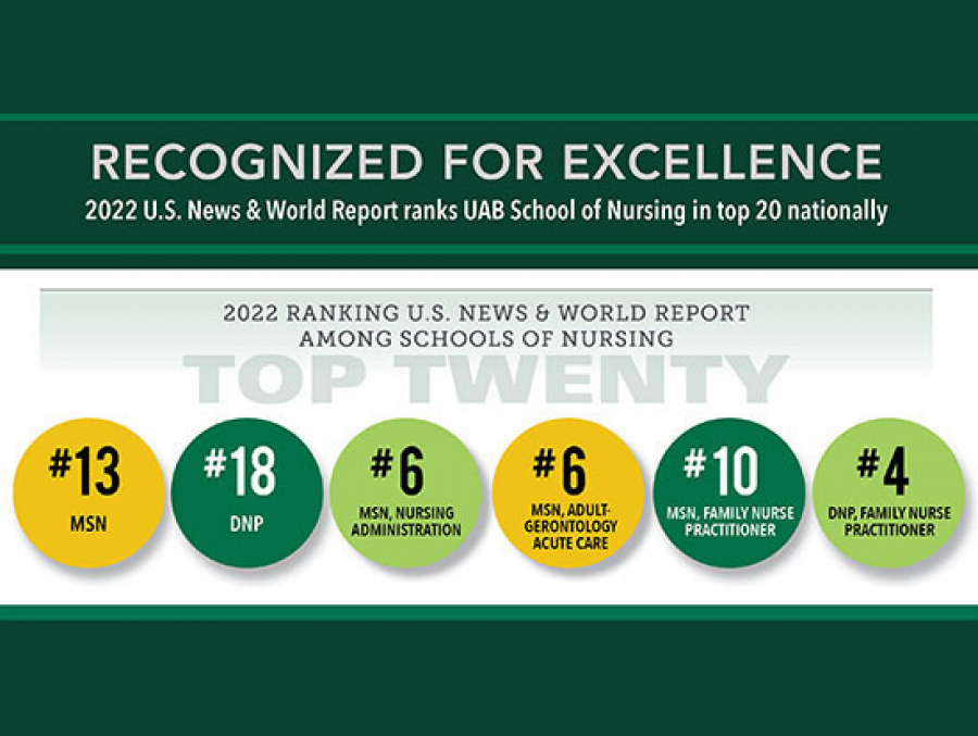 UAB School of Nursing graduate programs, specialties nationally ranked by U.S. News & World Report