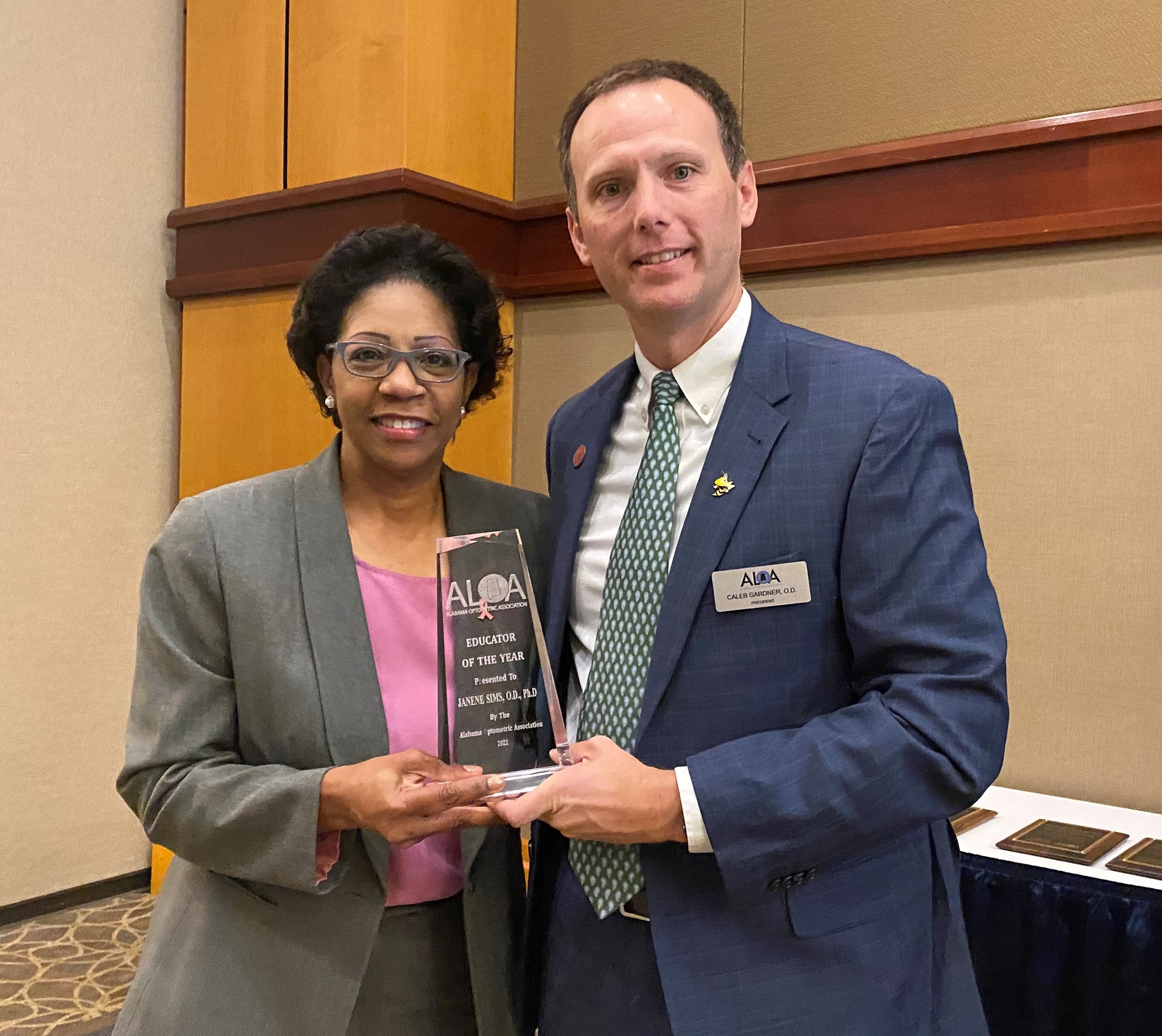 Janene Sims, OD, PhD, FAAO, is the state’s 2022 Optometric Educator of the Year. The American Optometric Association (ALOA) granted the associate professor this honor.